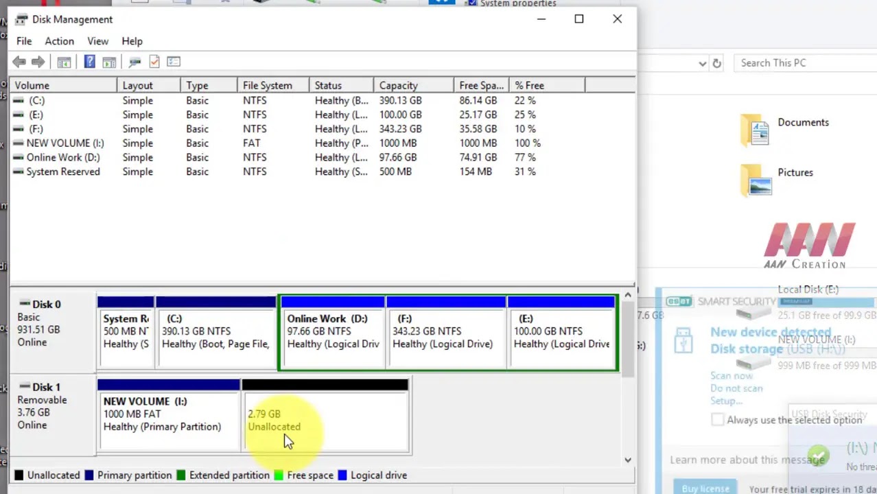 02. Format the USB flash drive in the NTFS file system and then open the Disk Management (diskmgmt.msc) console.