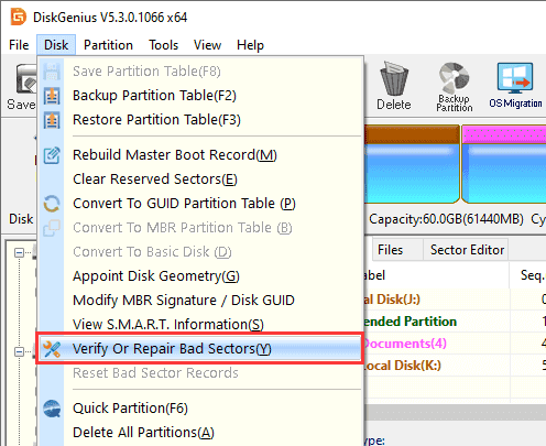Stage 1 Right-click on the plate you need to check or fix awful divisions and pick the “Confirm Or Repair Bad Sectors” choice structure setting menu.