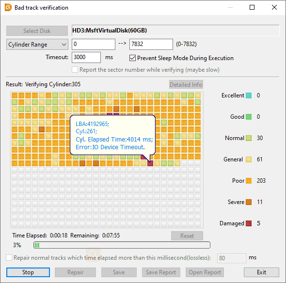 Stage 2 Click “Start Verify” catch and DiskGenius begins to filter the circle and check if there is an awful segment.