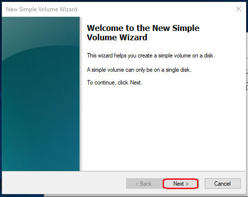 04. “New Simple Volume Wizard” window will appear on the screen and click on