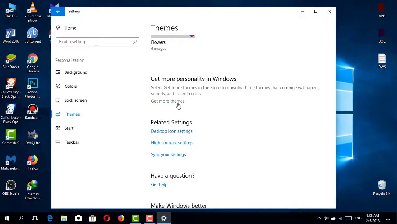 - Click on Get more themes in Microsoft Store to browse the available free themes.