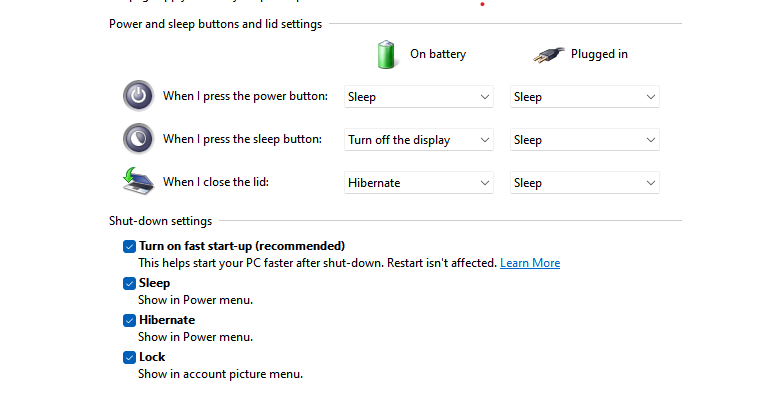 Select Choose what the power buttons do from the left sidebar. Click on Change settings that are currently unavailable at the top of the window.
