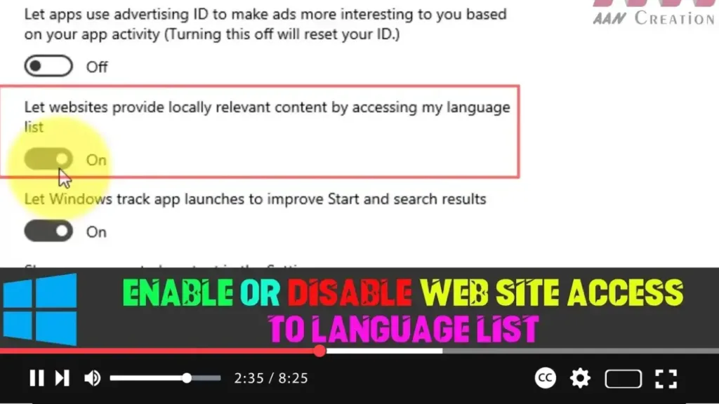 Step 04: On the right-hand side, look for the option labeled Let websites provide locally relevant content by accessing my language list. You can now toggle this setting on or off based on your preference: