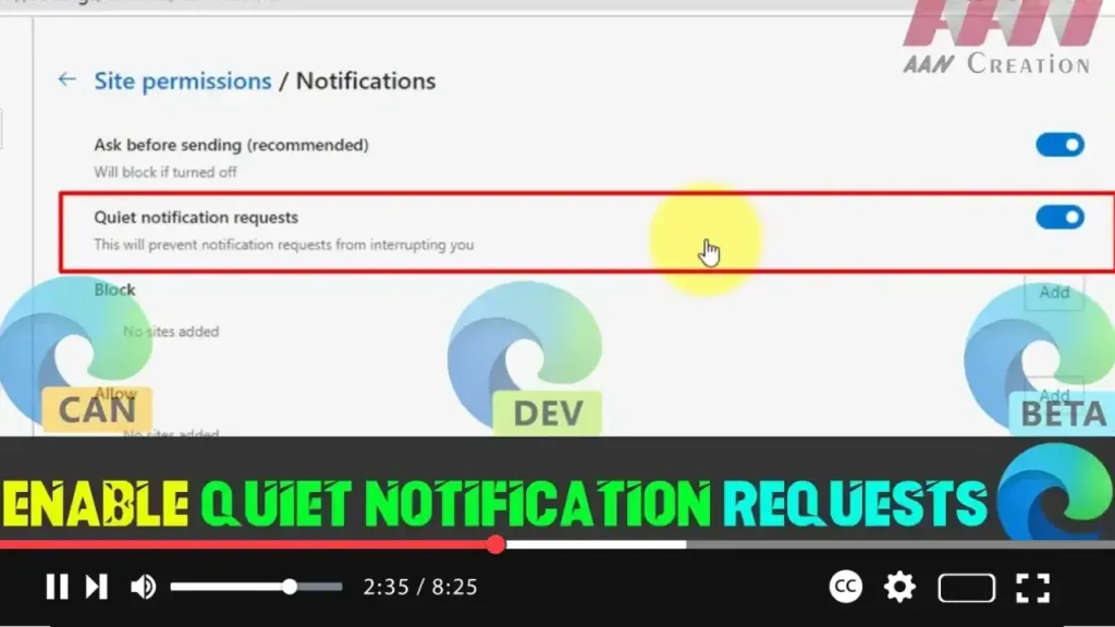 Steps to Enable Quiet Notification Requests in Microsoft Edge