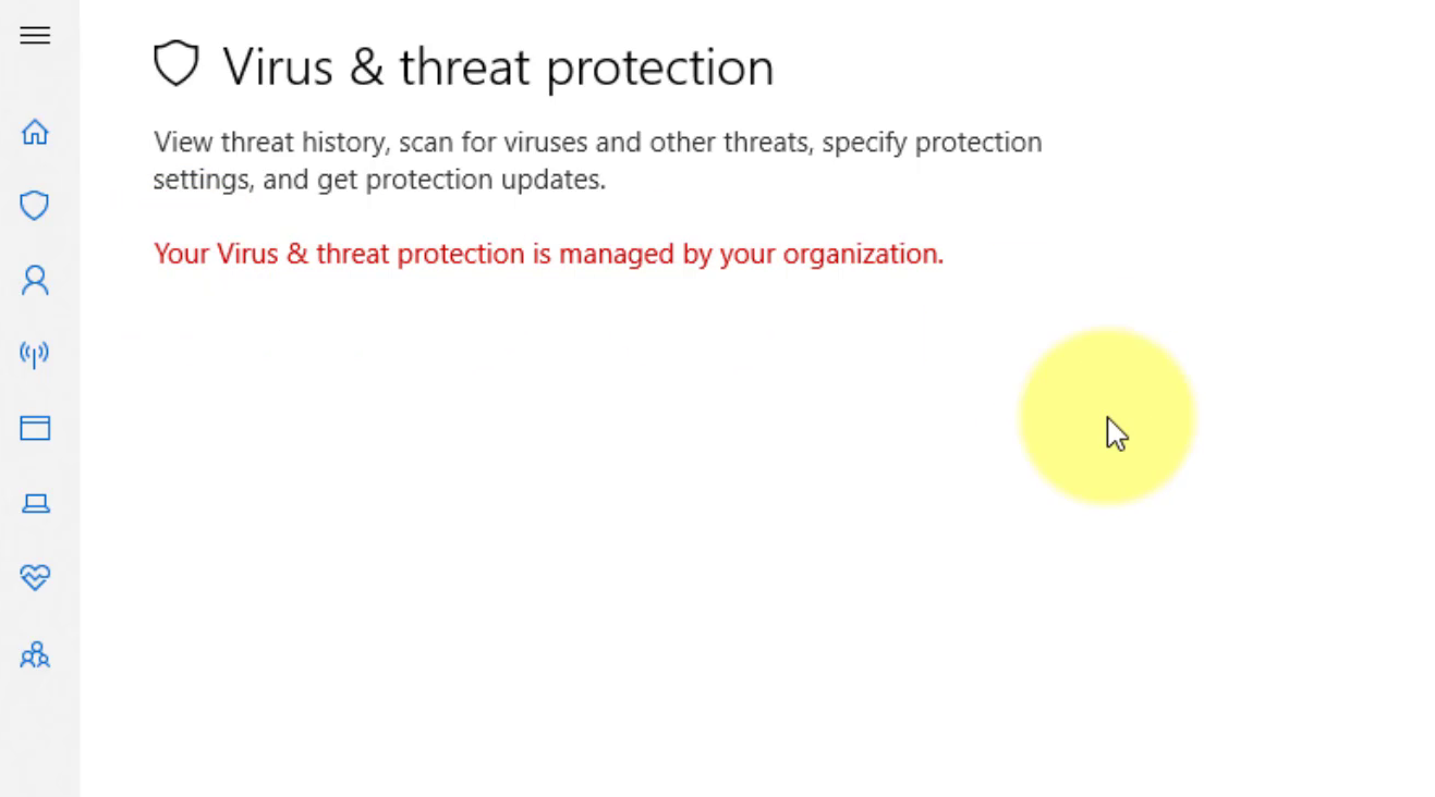 This error that “your Virus & threat protection is managed by your organization” Windows Defender happens especially when you have applied a Windows Update, particularly the April Build 1803 update.