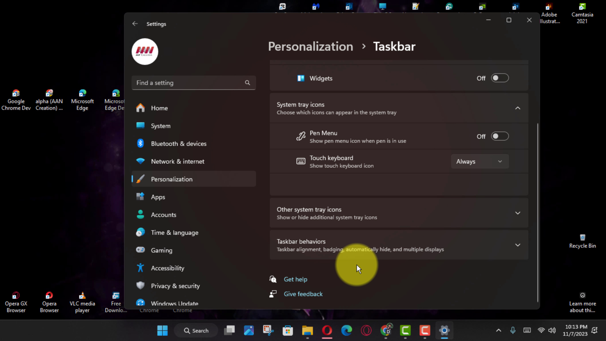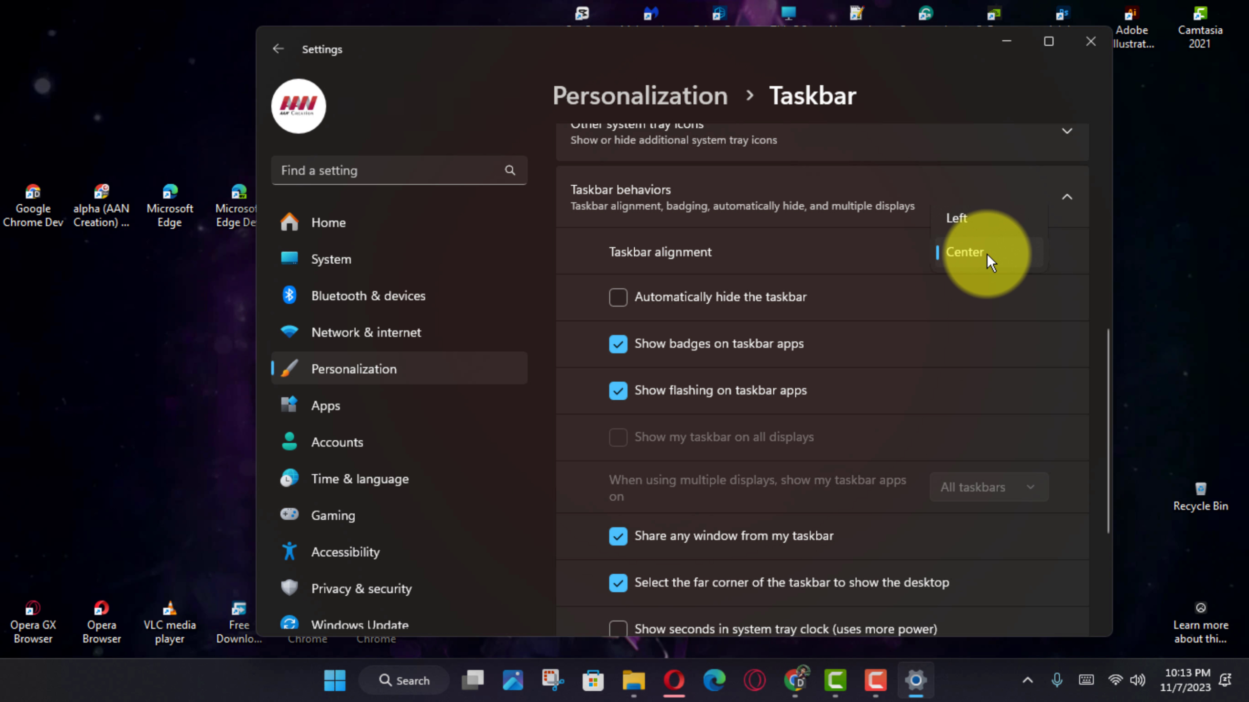 Here are two methods to change the Taskbar alignment on Windows 11: