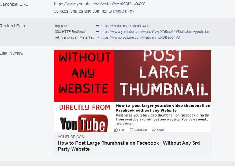Now, you can use Facebook’s Sharing Debugger to refresh the thumbnail information for your shared content: