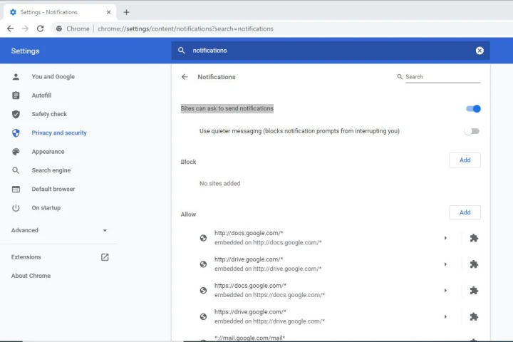 05. In the Notifications settings, find Bethanyharrell.pro URL and remove the Bethanyharrell.pro domain by clicking the three vertical dots on the right to the URL and selecting Remove.or, copy this