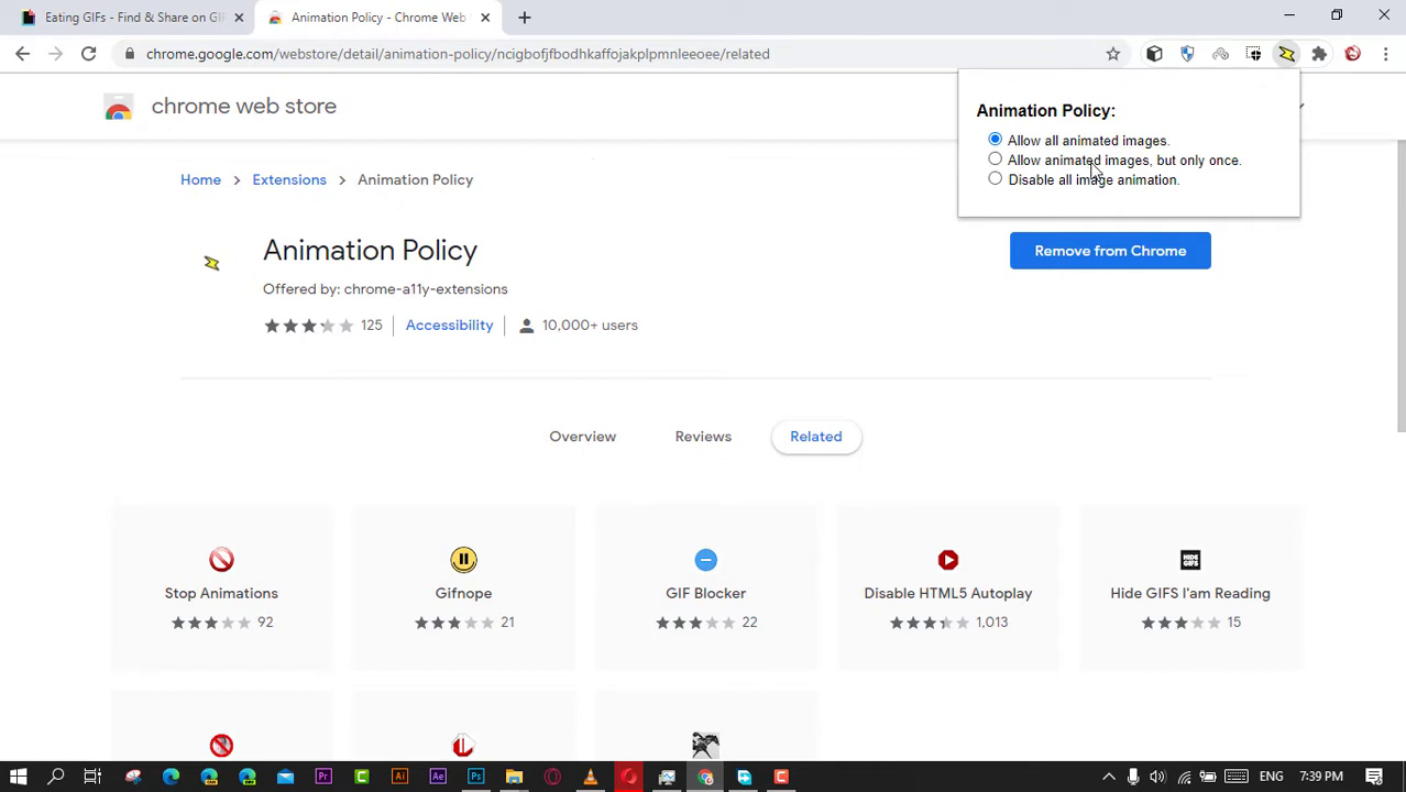 • Select an appropriate extension from the search results, such as “Gif Jam (Animation Stopper).”
